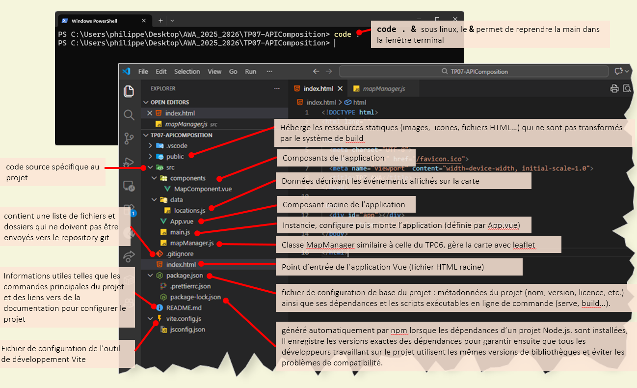 Ouverture et contenu du projet dans VSCode -