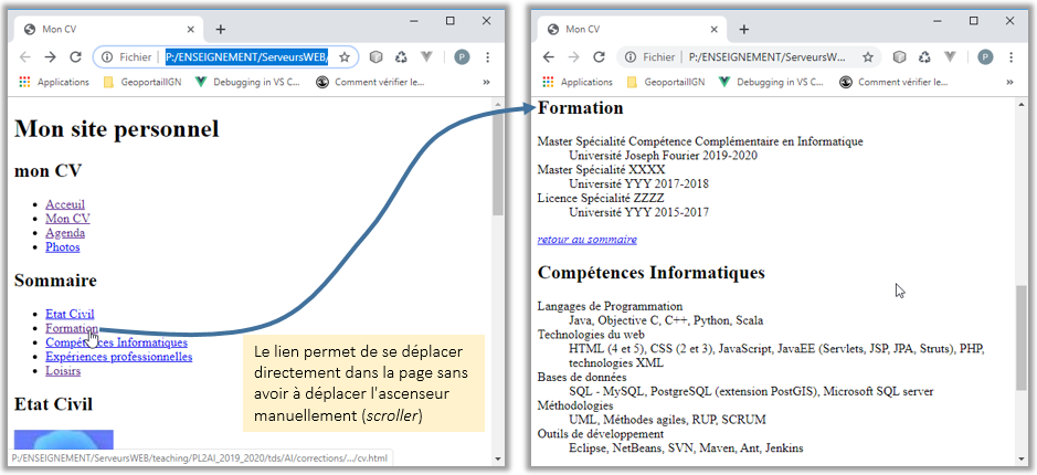 .Utilisation d'un lien interne (ancre) pour naviguer dans une page. Pour effectuer une navigation rapide dans votre CV comme sur la figure ci-dessus, procédez comme suit: