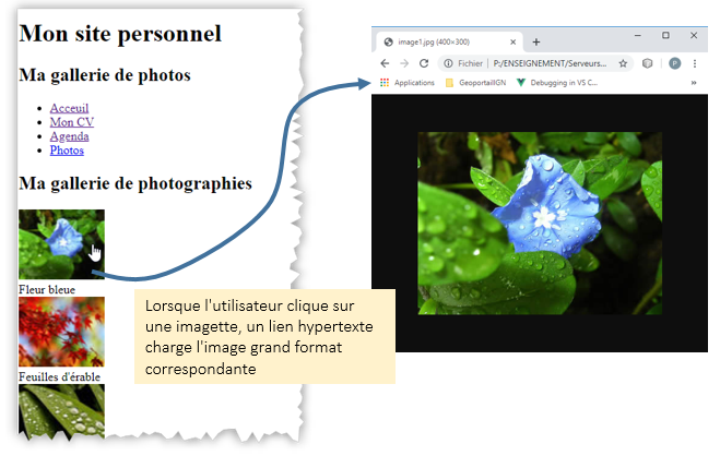 ), ainsi que deux images. - Visualisez ces pages dans votre navigateur.