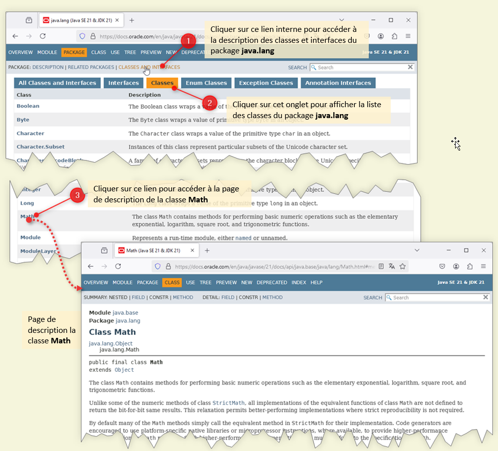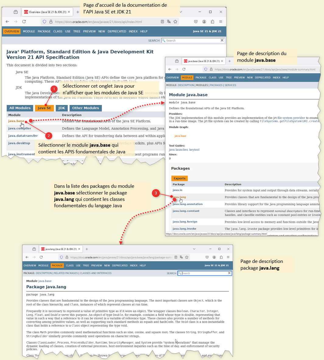 Exercice 1.2. : En partant de la page d'accueil de la documentation JDK 21, retrouvez la page présentant l'API du package java.lang (voir figure ci-dessous).