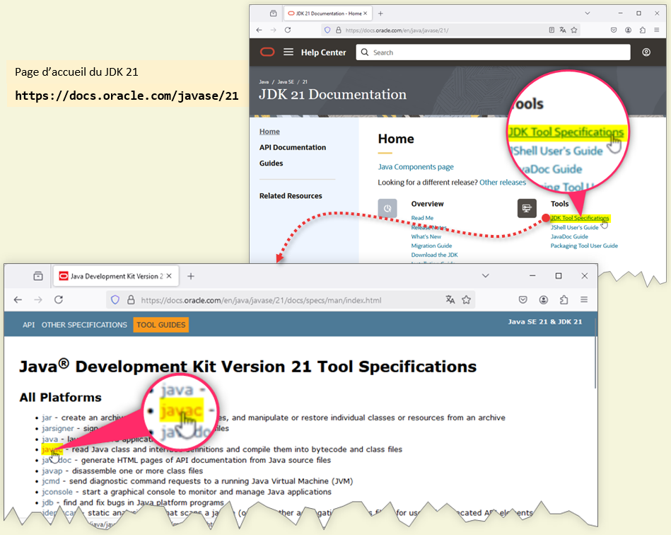 Exercice 1.3.1 : En partant de la page d'accueil de la documentation JDK retrouvez la page présentant la documentation des outils du JDK (pensez à l'enregistrer dans vos favoris, elle vous sera utile par la suite)