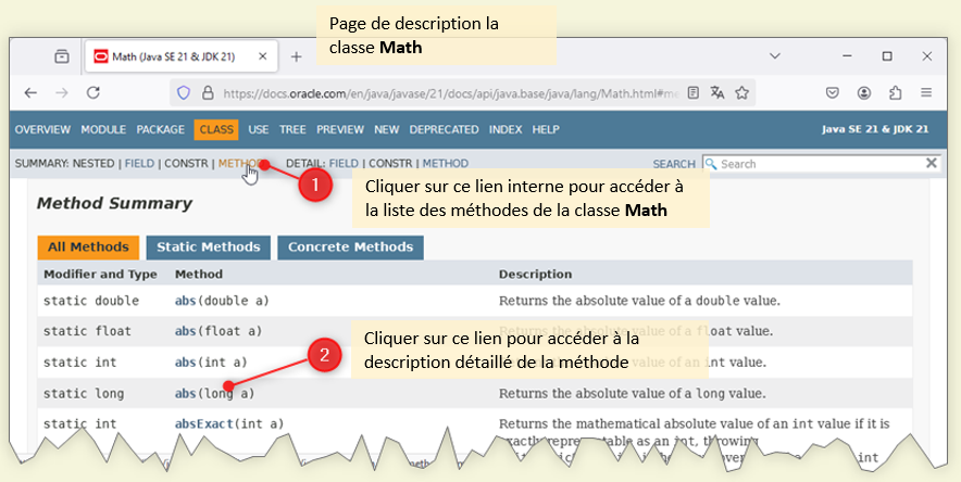 Depuis la page de description package java.lang accédez à la description de la classe Math (voir figure ci-dessous).